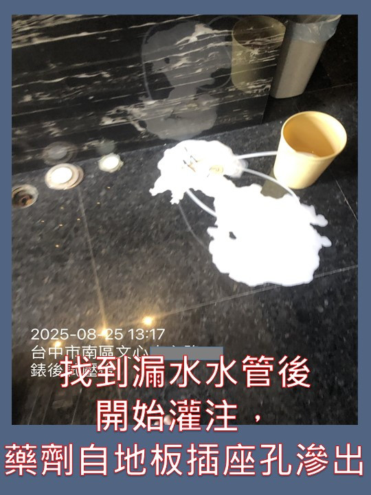 工程實績 管內修復 大樓水錶區地板不停滲水 WORK 工程實績 全部分類 開挖-儀器定位 管內修復 排水管 管內修復 大樓水錶區地板不停滲水 高級住宅19層大樓,頂樓水錶區共有65只住戶水錶 點我看影片👉👉https://youtube.com/shorts/0YvXjNSUq_g?feature=shared 水錶區旁 通往露台門口處 不停滲水水錶區旁室內地板插座 也是一直滲水65只水錶逐一測試,確定漏水管路後,進行免打牆管內灌注修復漏水水管灌注後一星期,原本漏水處已經完全乾燥,不再漏水。 回上一頁